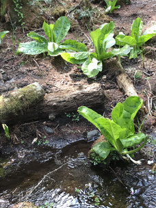 水芭蕉の群生はこだまの森の奥で見られます、他にも規模は小さくなりますが境峠(縁結神社)付近でも見られます。