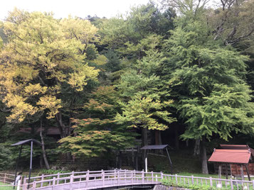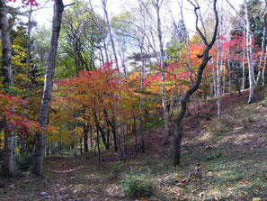 栃ノ木等の落葉により、落ち葉の絨毯になっています。楓はあまり紅くこうよしませんが黄色くいなってきました。