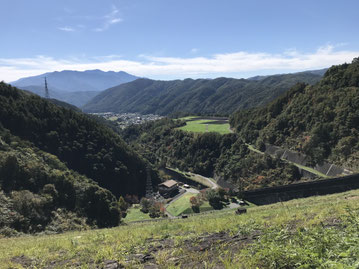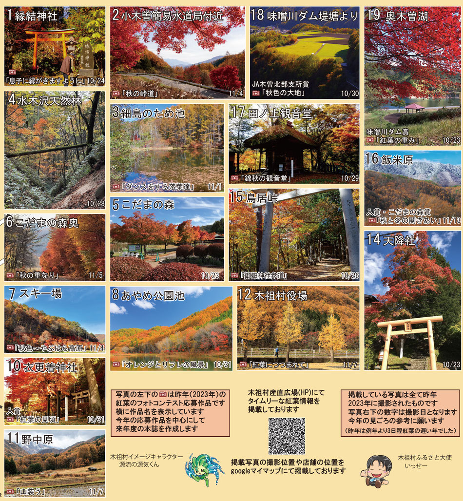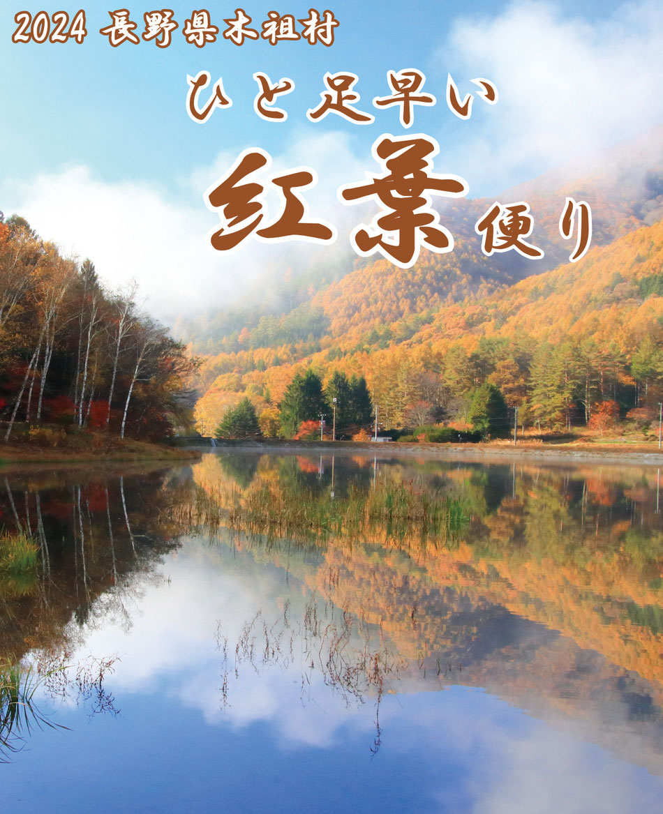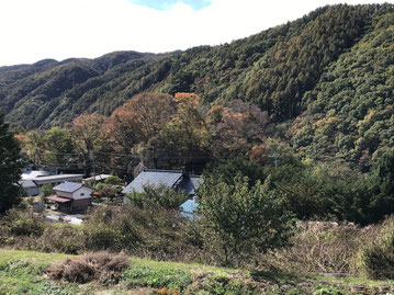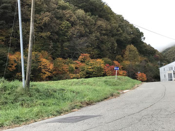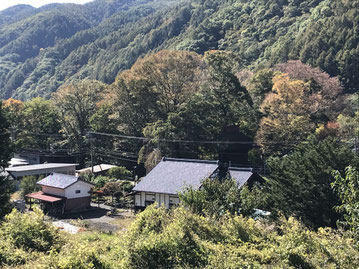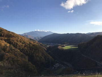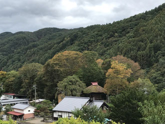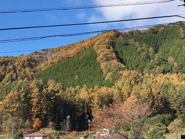 天然林の紅葉はほんのわずかにポツリポツリ見えます、木祖村を取り囲むカラ松の紅葉はほんの少し緑がくすんできた様です。