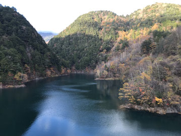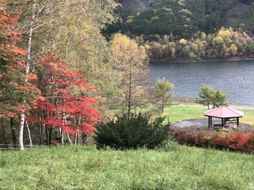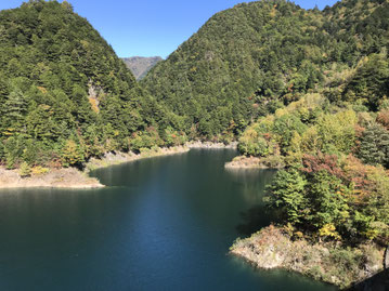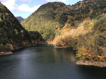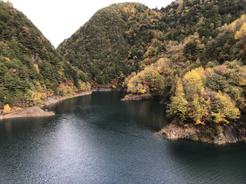 奥木曽湖全体でカラマツの紅葉もピークになってきました。