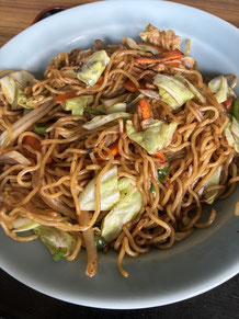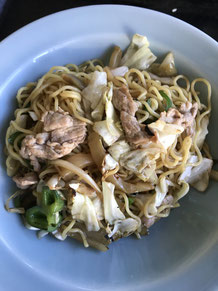 豚肉・キャベツ・人参・玉ねぎ等が入った、祭りの出店で売っているようないわゆる普通の焼きそばです。